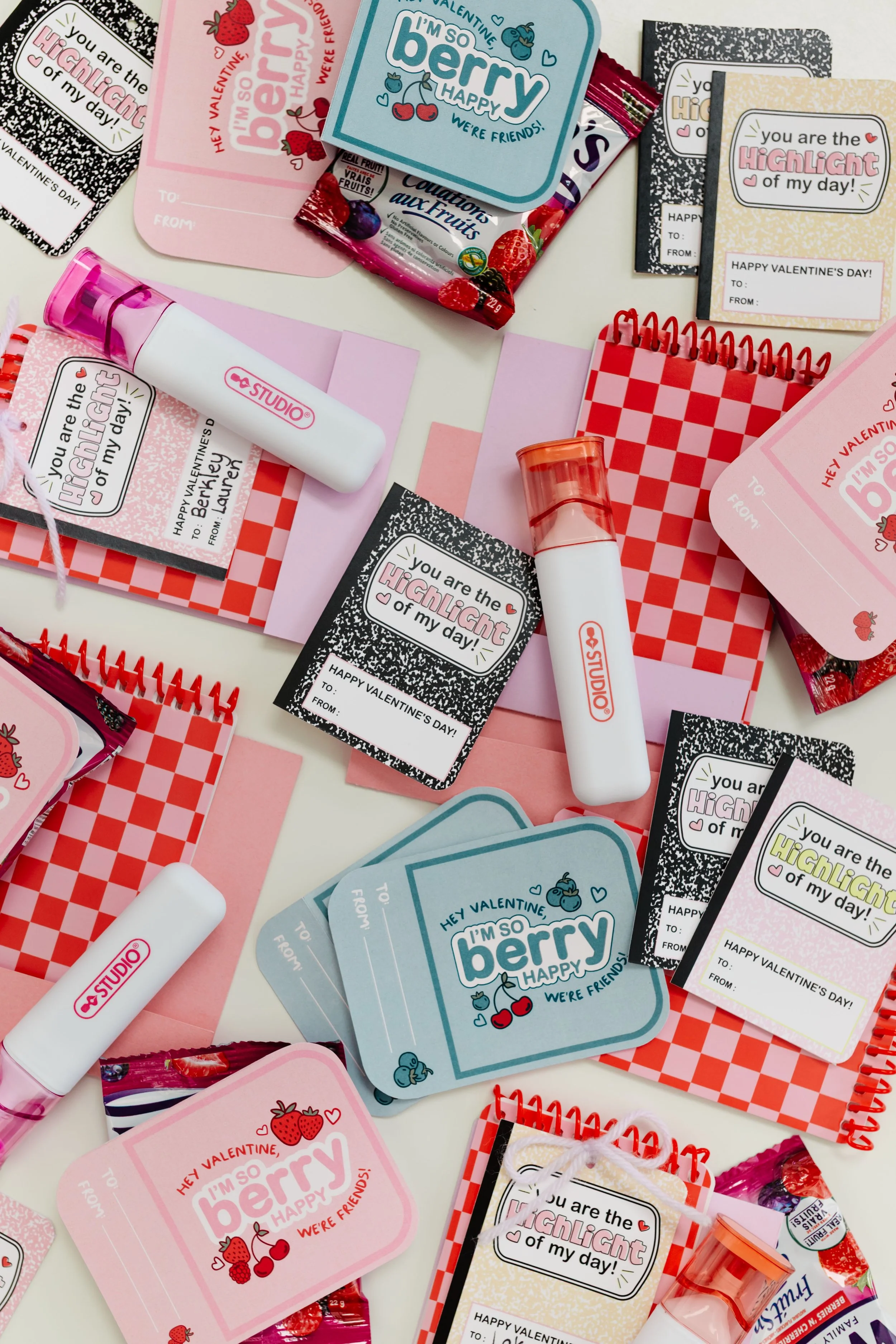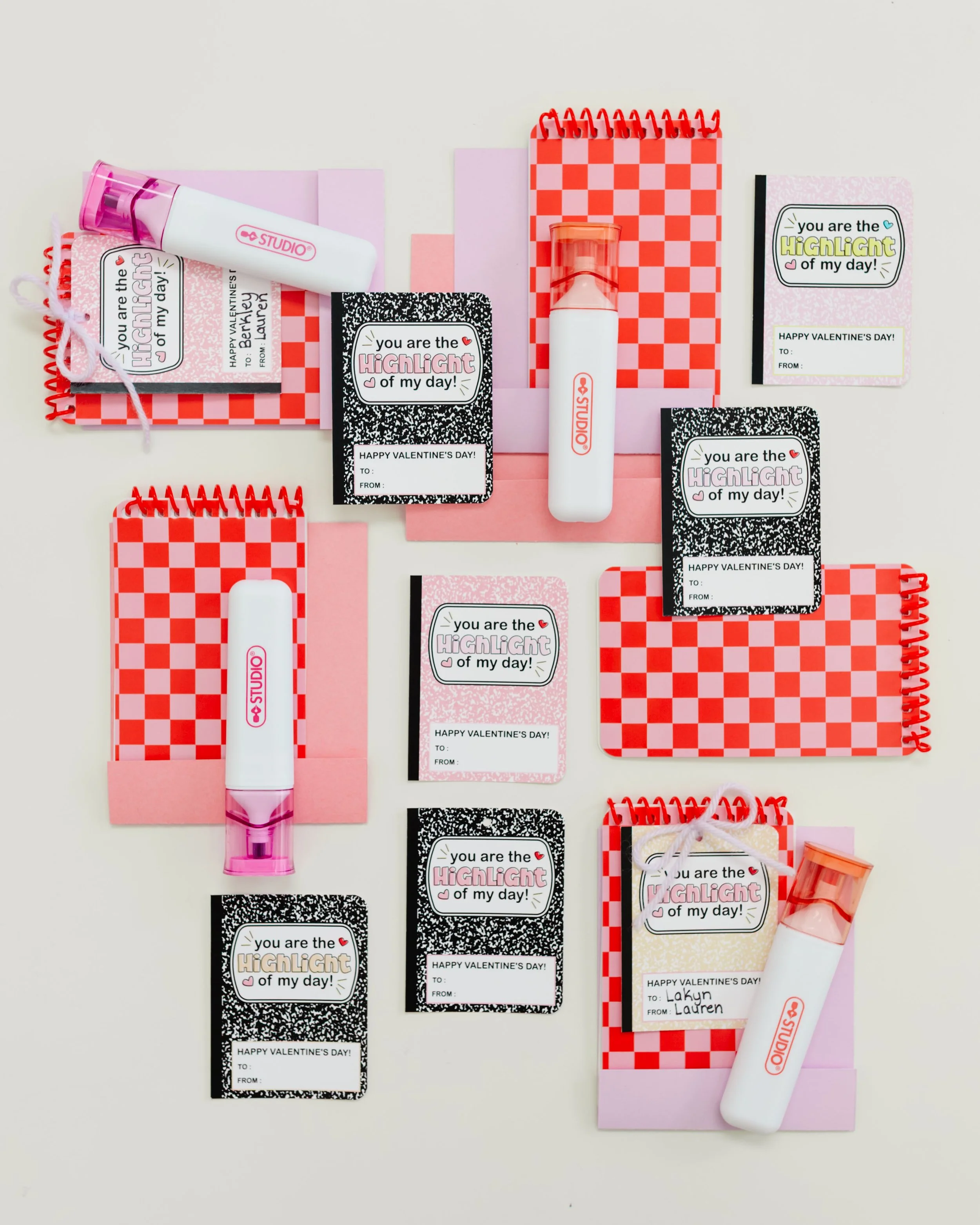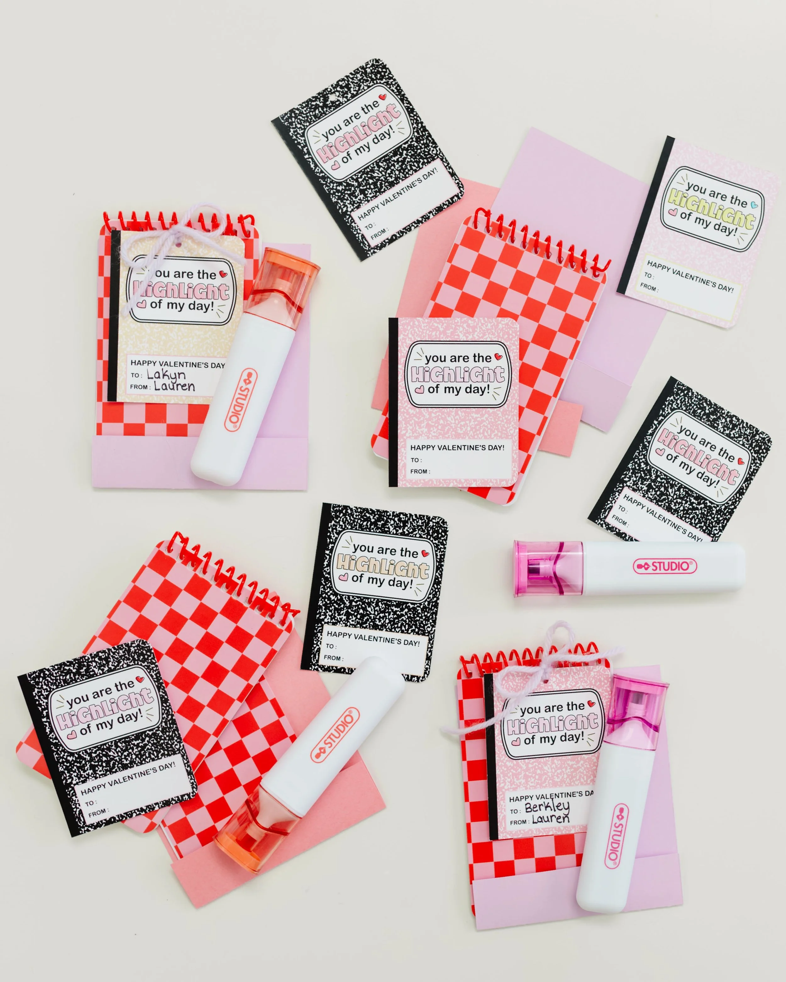 I love doing a non-candy valentine, and these cute highlighters + notepads make the cutest combo (my 4th-grader loved them!!) Click the link below to download your own “you are the Highlight of my day” printable valentine cards!
