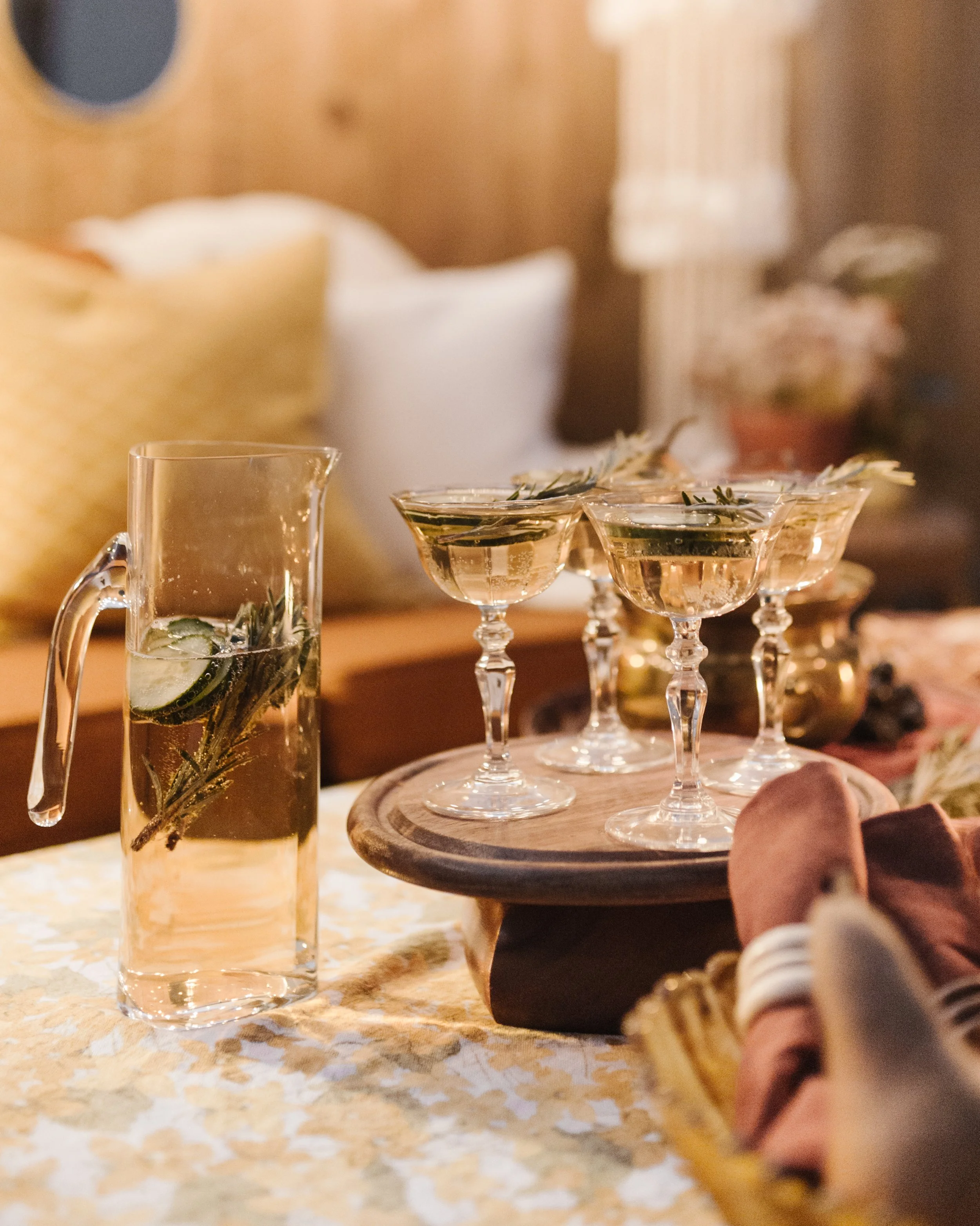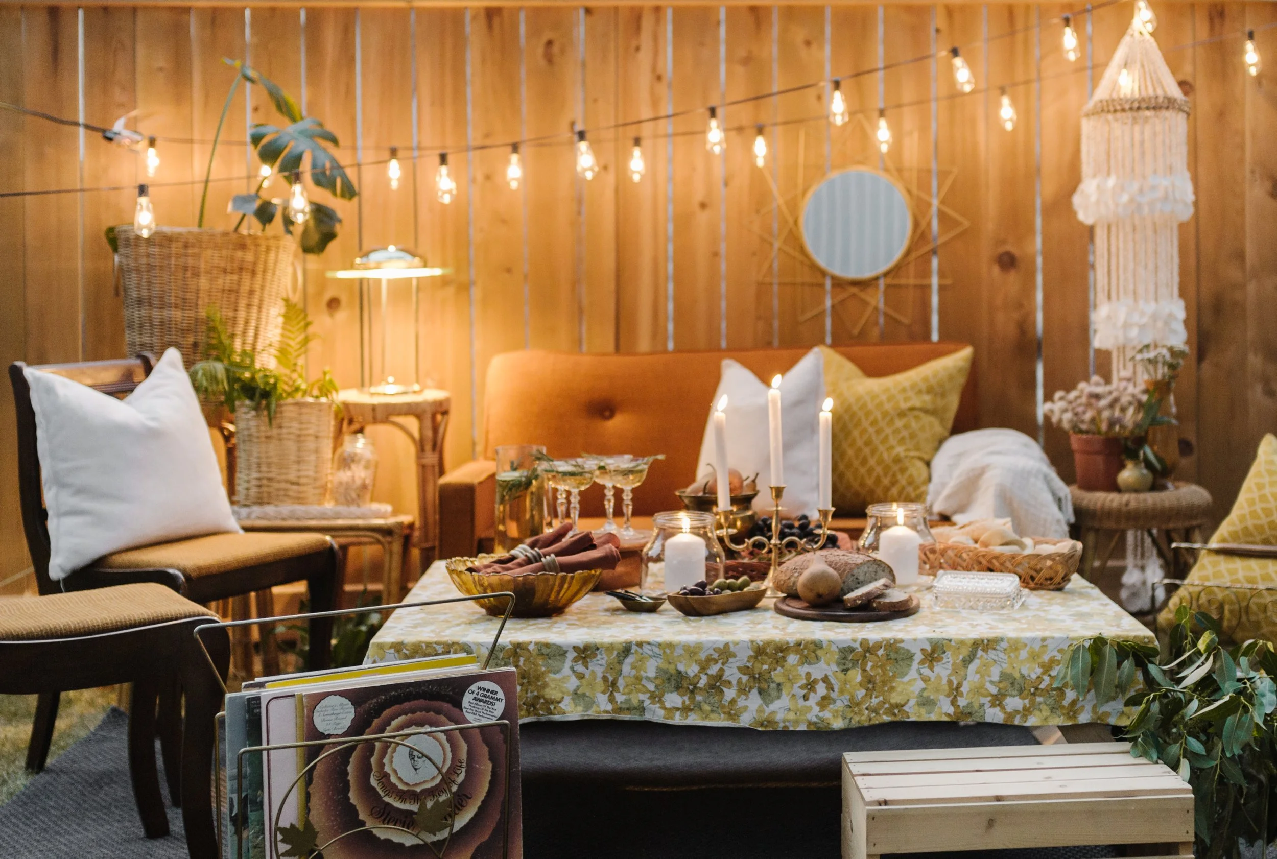 garden lights, candles, cocktails + a cozy couch outside set set the scene for this moody soiree that Katie from Ruby Road Thrift and I put together to showcase some of her incredible thrifted finds!