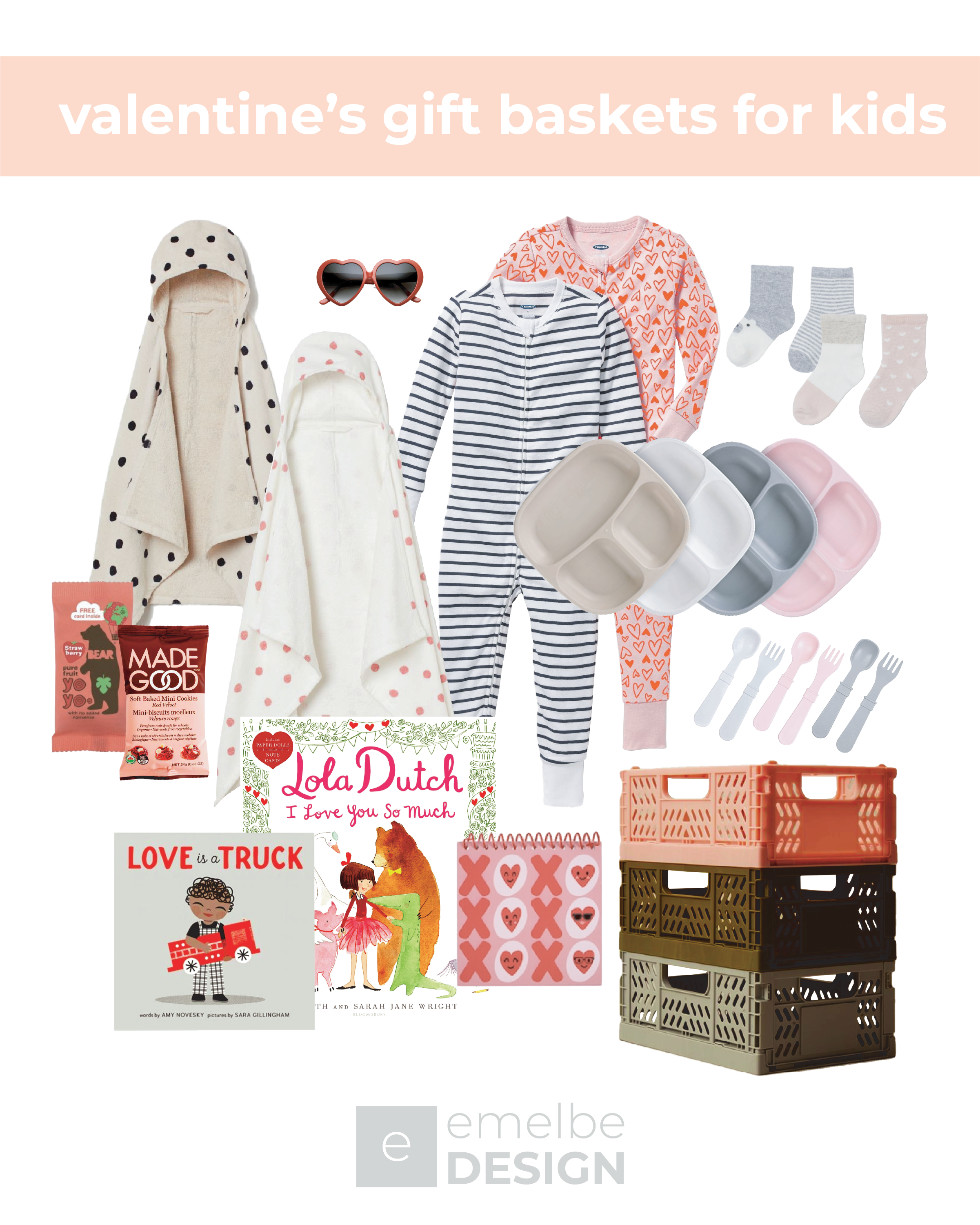 Well it’s no surprise that I LOVE putting little gift baskets together for my kids. I love finding sweet little things to gather in their baskets - usually just practical things they need, a few snacks, and always a book. In these baskets - I included: hooded bath towels, books, plates + cutlery, granola bars and fruit snacks, a little outfit + pajamas, socks, and a little toy car for Ethan, and notebook+stickers+pens for Lauren. I used these baskets and I love that I can use them after - either in their rooms or my own office for organizing things!